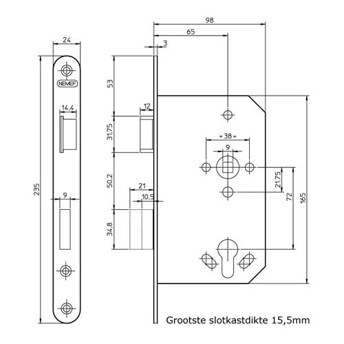 | Sluitlengte nachtschoot 21 mm | |