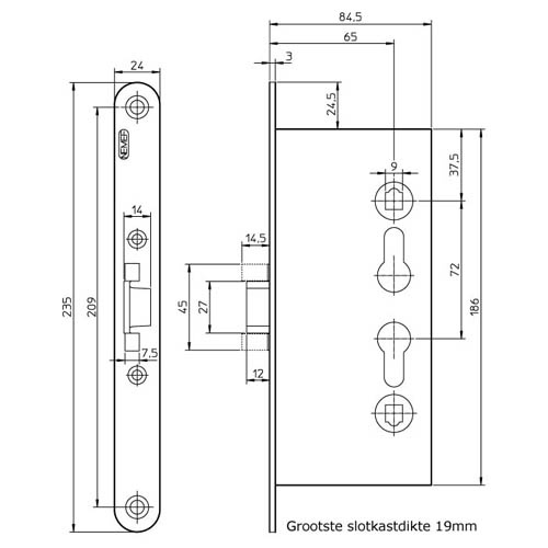 Voor zowel links- als rechtsdraaiende deuren bruikbaar. Geschikt voor nooddeuren volgens EN179 in de utiliteitsbouw. Voor kruk-kruk of knop-kruk toepassing. Alleen te combineren met EN179 geteste beslagen. Niet toepassen i.c.m. een knopcilinder. Geschikt voor toepassing in brandwerende deuren