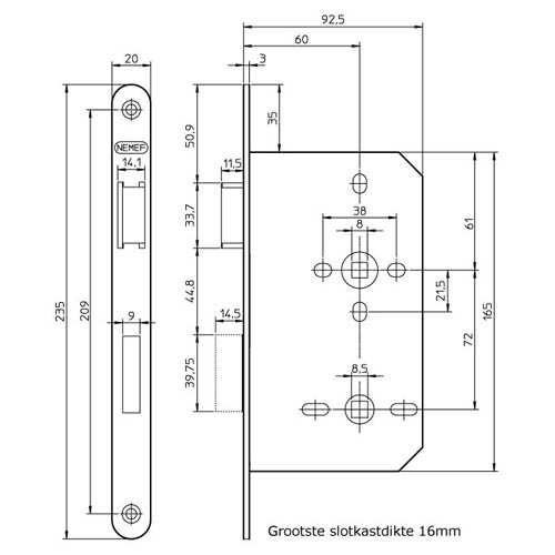 | Materiaal slotkast staal gelakt | |