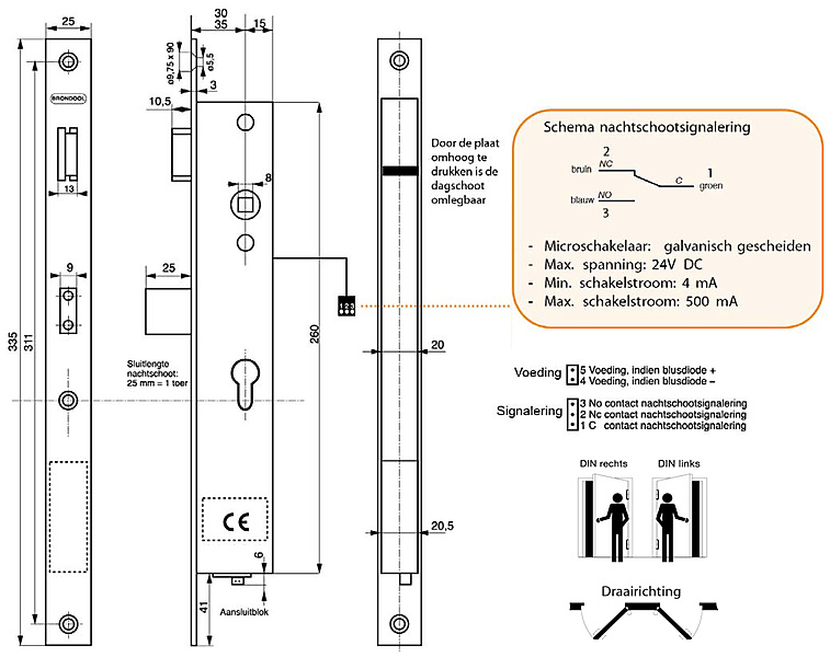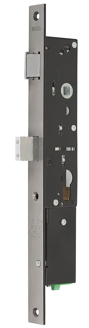 Brondool brandvluchtslot type 1200. Toegangsbewaking en toegangscontrole voor binnendeuren en buitendeuren met ontsnappingsmogelijkheid bij brand en andere calamiteiten. In het bijzonder geschikt voor smalle deur- en kozijnstijlen. Toe te passen in vluchtdeuren van kantoorcomplexen, musea, verzorgingstehuizen, overheidsinstellingen, ziekenhuizen etc. deuren die in geval van nood snel ontgrendeld moeten worden. Zonder Nachtschootsignalering