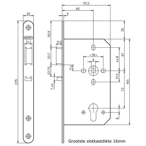 Cilinder insteek centraalslot voor toegangsdeuren en nooduitgangen