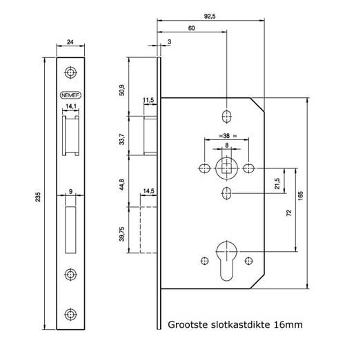 | Afmeting voorplaat 235 x 24 mm | |