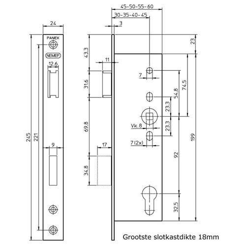 | Materiaal slotkast staal verzinkt | |