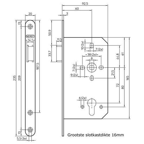 | Afmeting voorplaat 235 x 20 mm | |