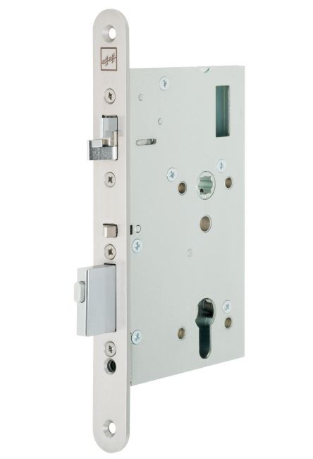 EFFEFF Centraalslot 2724CE17U24 breedstijluitvoering voor elektrische sluitplaat. De effeff Intermediair is een mechanisch zelfvergendelend slot met vluchtfunctie, dat alleen door geautoriseerde gebruikers van buitenaf geopend kan worden. Dit kan met een sleutel of elektronisch via een kaartlezer, pincodetableau, vingerscan of intercomsysteem.