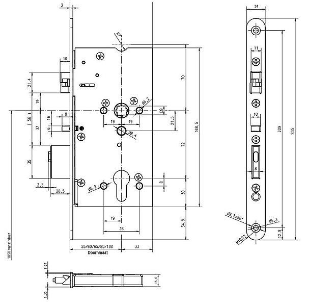 | Verkrijgbaar in diverse doornmaten 55 - 60 - 65 mm | |