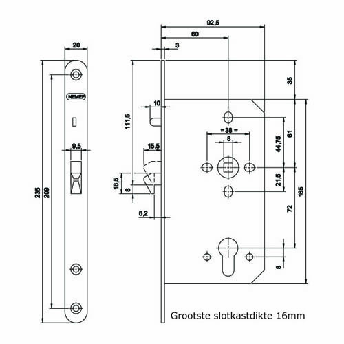 | Materiaal slotkast staal gelakt | |