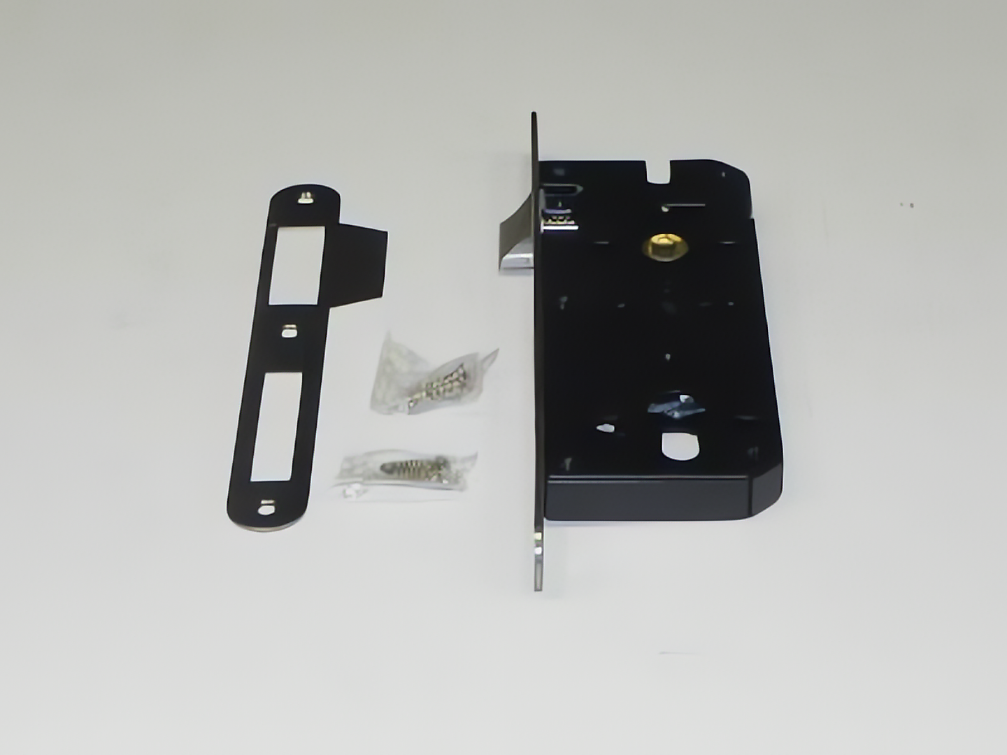 Insteek cilinderslot zowel links als rechts toepasbaar met doornmaat 40mm en pc85mm met RVS voorplaat en sluitplaat zwart gepoedercoat slotkast