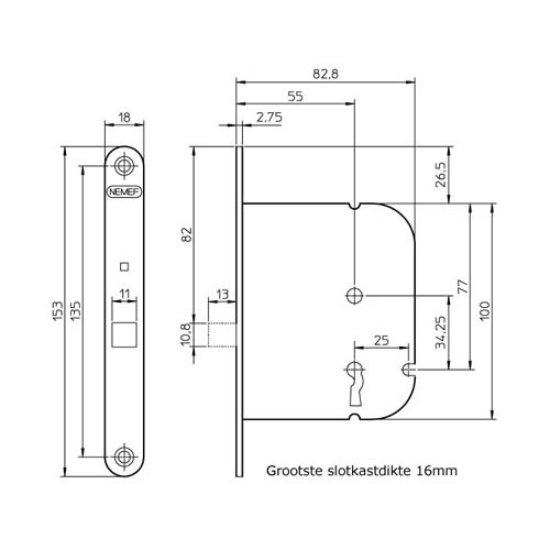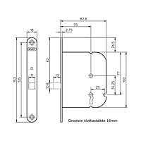 | Afmeting voorplaat 174 x 20 mm | |