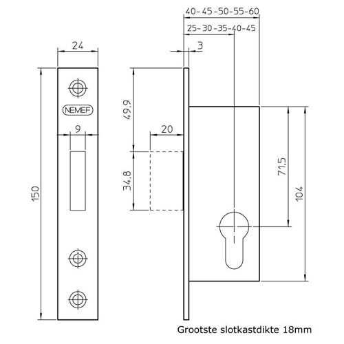 Kastslot Nemef 9641. Als bijzetslot voor metalen en kunststof buitendeuren in de utiliteitsbouw
