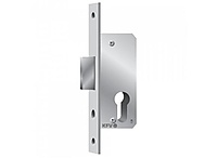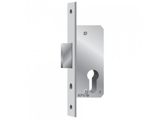 KFV 48PZ nachtcilinderslot. Smal bijzetslot met enkel nachtschoot 15mm. Geschikt voor alle metaaldeuren, PVC- of aluminiumdeuren. Nachtschootslot met vierkante voorplaat geschikt voor voor europrofielcilinder en is links en rechts bruikbaar. KFV cilindernachtslot met eentoerige verzinkte nachtschoot in gesloten verzinkte slotkast. Zonder sluitplaat