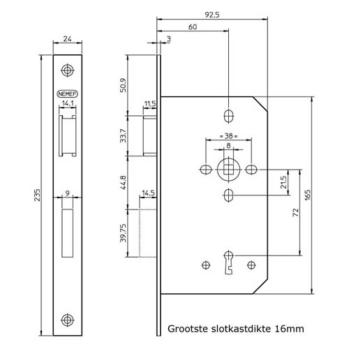 Klavier insteek dag- en nachtslot voorplaat 235x24mm