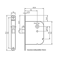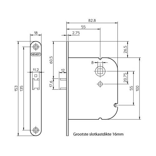 | Afmeting voorplaat 153 x 18 mm pc 55 mm | |