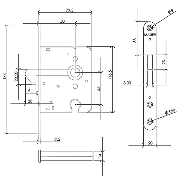 Mauer 1134 Schuifdeurslot PC55 DM50 Schuifdeurslot met maatvoering conform woningbouwsloten.