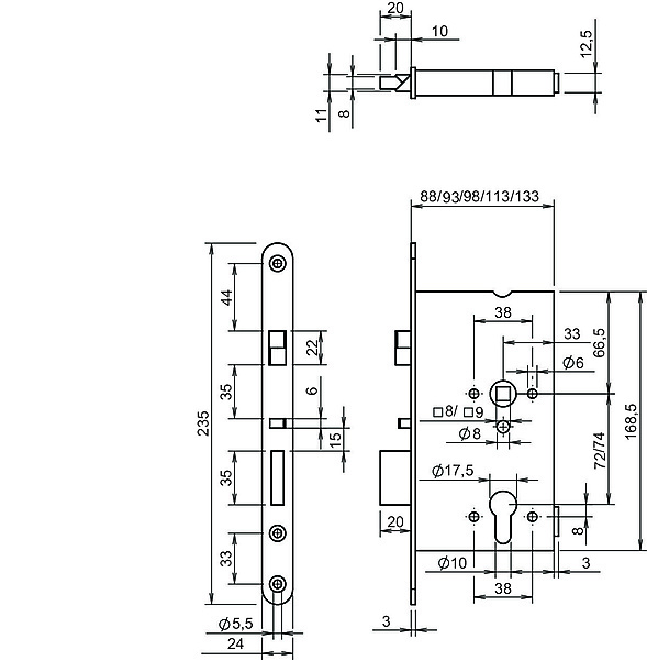 | Doornmaten 55, 60, 65, 80, 100 mm | |