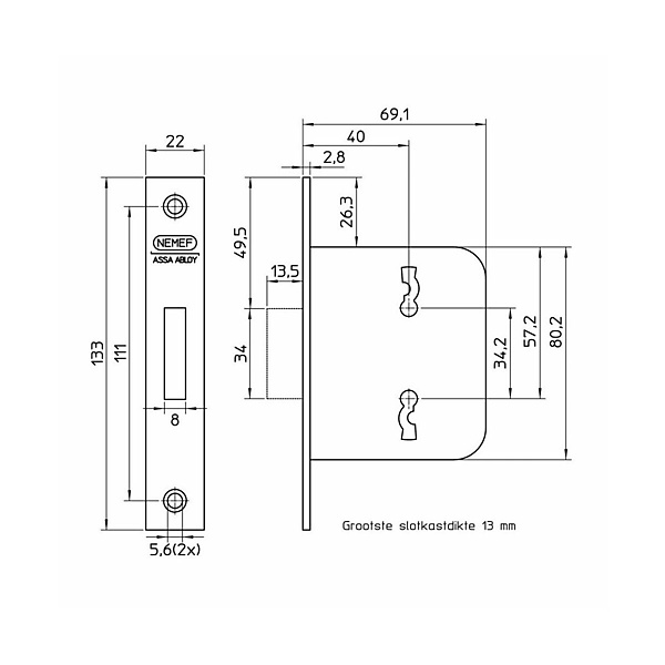 Nemef kastdeurslot 210-40 met doornmaat 40mm. Dit kastslot is zowel links als rechts toepasbaar. Ruim assortiment kastsloten beschikbaar