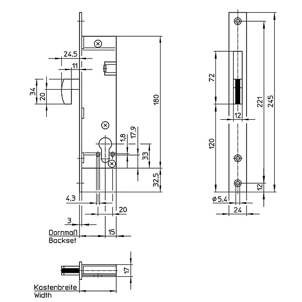 wilka 1436 Insteek-zwenkhaakschootslot Insteek-zwenkhaakschootslot, geschikt voor profielcilinders, compleet verzinkt, 1-toers = 24.5 mm nachtschootuitworp, nachtschoot met een los ingelegde stalen pen, hoge beveiliging tegen afzagen, schroefbevestiging voor extreem hoge zijdelingse belasting.