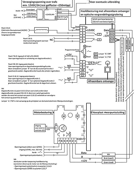 Besturing voor motormeerpuntssluitingen. Motortronic serie 007/008 en Furh 881. exclusief Masterkey, voor montage op DIN-rail De besturing is het communicatiemiddel tussen de externe aansturing en de motor van de meerpuntssluiting. Er zijn legio aansluitmogelijkheden. Ook is de besturing uitgerust met een ontvangstmodule. Hierdoor zijn zelfs draadloze componenten toe te passen. Als unieke eigenschap zijn er twee dagstandfuncties in te stellen. Dit houdt in dat de meerpuntssluiting in een "loopstand" te schakelen is. Ook kan er een terugmelding worden gegeven aan bijvoorbeeld een calamiteitensysteem. De besturing is voorzien van een LED-indicatie waardoor eventuele storingen direct te verhelpen zijn. Besturing geschikt voor onder andere Furh 881 motorsloten en HMB motormeerpunstssluiting