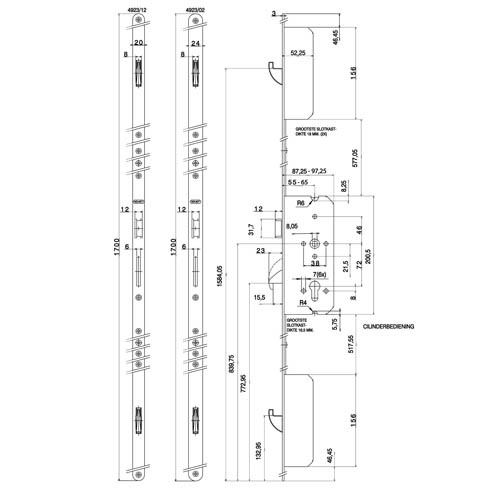 NEMEF Meerpuntssluiting Cilinderbediend Excellence Line 4923/01 SKG*** verkrijgbaar in diverse afmetingen. Geschikt voor toepassing in buitendeuren in woning- en utiliteitsbouw. Bij deurdikte 54 mm geschikt voor deuren tot en met hoogte van 2700 mm en bij deurdikte 38-40 mm tot een hoogte van 2400mm