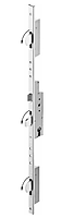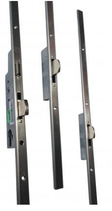 Sobinco 8401 meerpuntssluiting met valschoten. Het model 8401 van Sobinco is een meerpuntsluiting met 3 conische tuimelende valschoten. Het driepuntslot heeft een speciaal ontworpen mechanisme in de slotkast en conische valschoten boven en onder. Hierdoor wordt bij het vergrendelen van de deur de vleugels onder en bovenaan tegen het kader aangetrokken zodat de deur wind -en waterdicht is. De voorplaat is vlak en in roestvrij staal (de lengte moet steeds op maat afgezaagd worden). Zowel voor linkse als rechtse deuren, de dagschoot van dit slot is omkeerbaar. Vervanging van dit slot is zeer gemakkelijk.