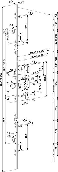 - Voorplaat 24 x 6,5 x 1760 mm (b x d x h)