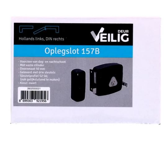 Veilig oplegslot OSW 157B. Voordeurslot met dag- en nachtslot en vaste cilinder. Draairichting: L1 - DIN links of R2 Rechts verkrijgbaar