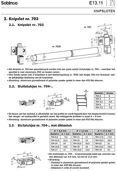 Raamknip of knipslot 703 EV1 Sobinco 703-C1 voor de vergrendeling van draai- en kiepramen.