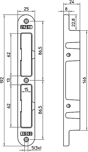 Nemef Veiligheidssluitkom VS 4000-II zamac verzinkt 25x192mm afgerond, DR 1+2+3+4. Voor links- en rechtsdraaiende deuren Inbraakwerendheid volgens NEN 5096 (SKG**)