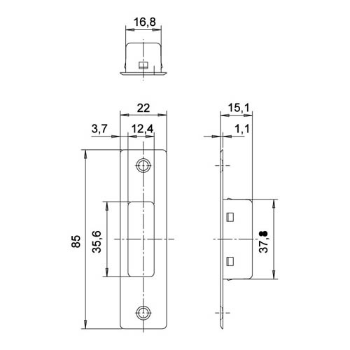 | Afmetingen (LxBxH) 85 x 22 x 15,1 mm | |