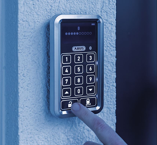Naast de smartphone is het numerieke codepaneel een praktisch bedieningselement voor de elektronische aandrijvingen van ABUS.