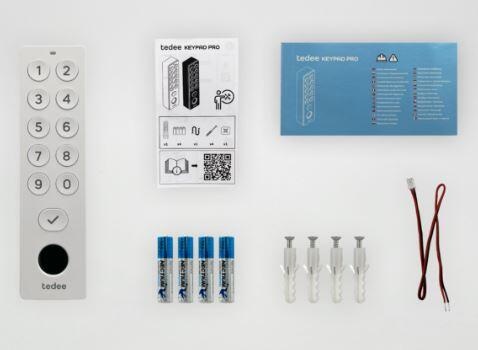 | Inhoud doos Tedee Toetsenblok PRO 4 x AAA-batterijen 4 x Muurpluggen en montageschroeven Kabel voor bedrade ingangsadapter Activeringscode kaart Snelstarthandleiding Veiligheidsinformatieboekje | |