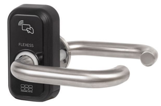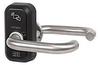 Maasland Flexess Aero Intra FL200 kaartleesbeslag dat eenvoudig op mechanische sloten kan worden gemonteerd. Flexess Aero Intra werkt op batterijen dus bekabeling is niet nodig. Bediening via MIFARE® kaarten/tags. Programmering is eenvoudig en kan zonder extra apparatuur. De kruk aan de binnenzijde is altijd vrij te bedienen. Flexess Aero Intra is voorzien van geluidsindicatie en statusverlichting. Door de separaat te plaatsen cilinderrozetten en eurprofielcilinder is de deur ook altijd met de sleutel te openen.
