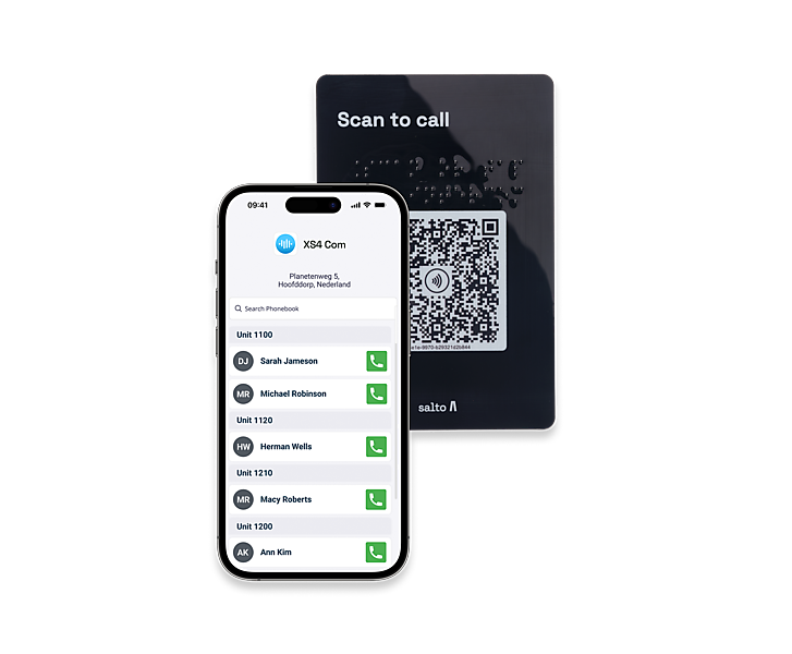 Salto XS4 Com iGO de intercom voor Salto KS en Salto Homelock via de smartphone. De XS4 Com iGO-plaat is een slimme deurintercomoplossing zonder gebruik te maken van een fysieke intercom. Bezoekers kunnen contact opnemen door de QR-code op de iGO-plaat of sticker te scannen of aan te tikken. Hierdoor kunnen bewoners op afstand de deuren ontgrendelen met hun telefoon, waar ze ook zijn.