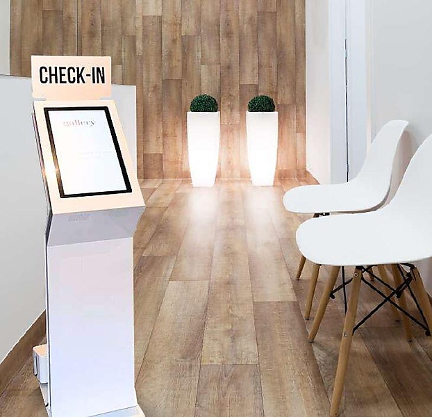 Wanneer een bezoeker arriveert, kan deze zich registreren bij de receptiezuil. De bezoeker selecteert eenvoudig het doel of de persoon van zijn bezoek op het scherm. Vervolgens wordt aangegeven dat de bezoeker plaats kan nemen in de wachtruimte. De terminal stuurt onmiddellijk een bericht naar de persoon waarmee de afspraak gepland staat, zodat zij weten dat er iemand staat te wachten.