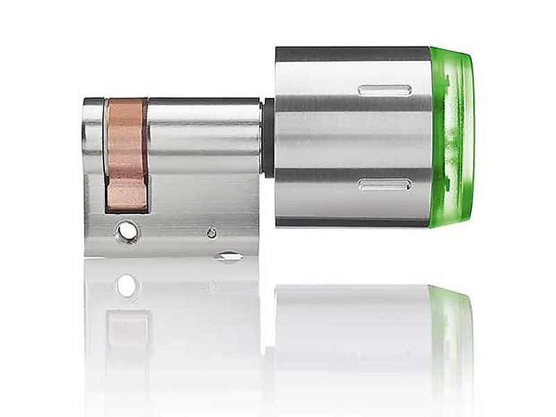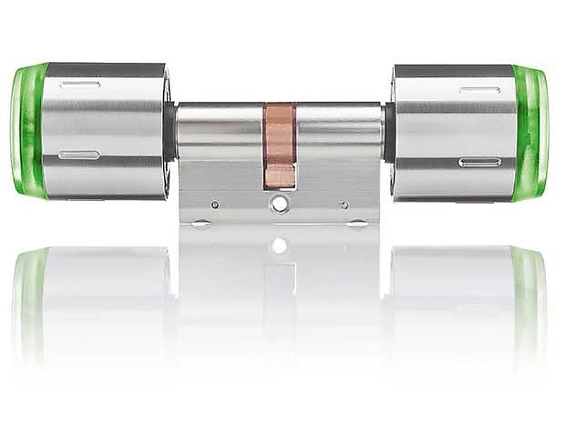 De binnenknop kan altijd worden bediend. De leesknop met de elektronica aan de buitenzijde wordt door de transponder vrijgegeven en verleent dan toegang.