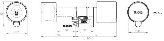 ILOQ elektronische knop cilinder 30/ 30mm SB met RTC klok. De zelf aangedreven iLOQ D5-cilinder genereert de benodigde elektrische energie uit de insteekbeweging van de sleutel. Via de D2D-commuicatie is het mogelijk om de blocklist bij te werken.