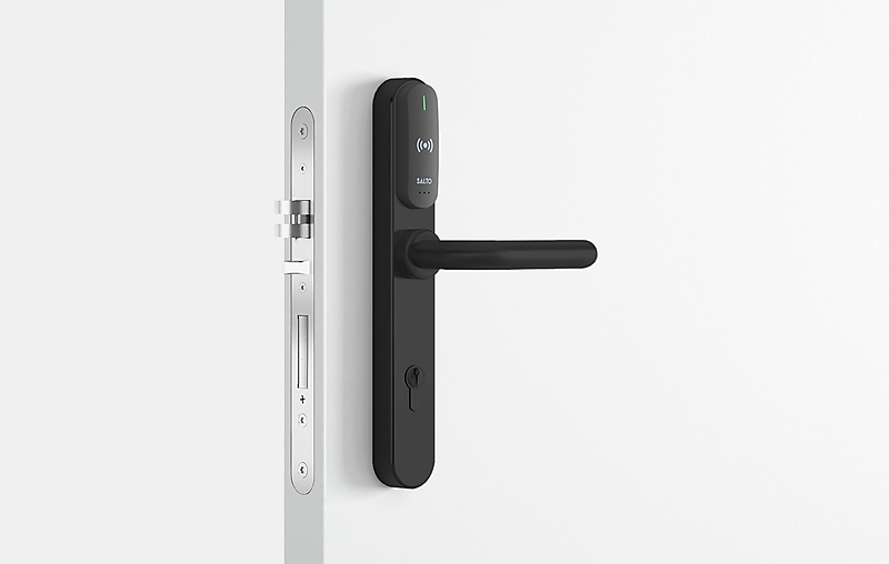 Salto BLE Original+ toegangscontrole elektronisch deurbeslag. Voor een gecontroleerde toegang via tags passen of telefoon. verkrijgbaar met lezer in zwart of wit.