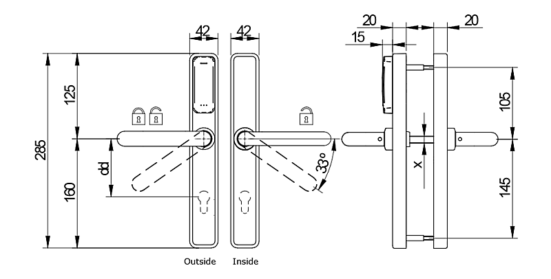 - Het slot is altijd van binnenuit te ontgrendelen (anti-paniekfunctie werkt in combinatie met een geschikt insteekslot).