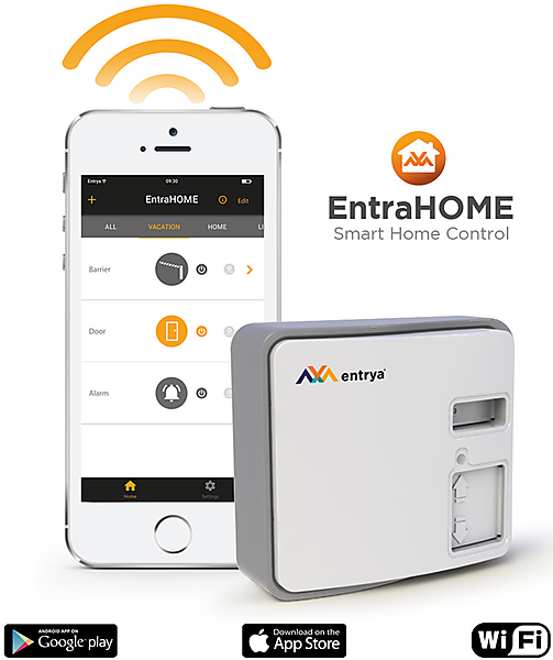 EntraHome Smart Home Control van Entrya. Met de EntraHOME-app beheer je wereldwijd elke toegang. Een gebruiksvriendelijke en uiterst veilige app dankzij de versleutelde communicatie. Open de juiste deuren enkel voor bevoegde mensen, en hou ze gesloten voor anderen. Hoe? Met EntraHOME! Kies zelf wie je toegang verleent of weigert met de EntraHOME-app op je smartphone.