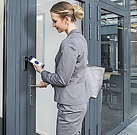 dormakaba evolo smart compact lezer 9104. De smalle compacte lezer past harmonieus in elke gebouwstructuur. Optionele kaart, sleutelhanger of sleutel met RFID voor de lezer houden en binnentreden. De lezer signaleert het vrijgeven visueel en akoestisch. De toegangslezer is met de weerbestendige variant met IP66 zowel geschikt voor binnen- als buitenzones. Het slanke design maakt directe installatie op deurkozijnen van metaal, hout of kunststof mogelijk. In meerdere dormakaba-systemen integreerbaar – in online of standalone bedrijf.