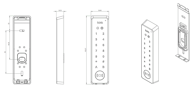 ILOQ RFID-deurlezer met codepaneel voor pincode NFC-compatibel. De iloq deurlezer is aangesloten op de deurmodule en heeft een touchscreen en NFC / BLE lezer. De deurlezer opent elektronische deuren en laat gebruikers hun sleutels updaten. De lezer functioneert als data sharing punt tussen de software database en D2D-apparaten. Compatibel met iLOQ S50 smartphone sleutel.