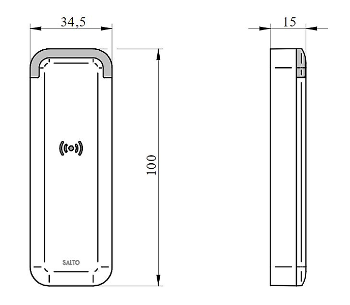 Salto design XS smalle wandlezer WRDM0M. SALTO XS4 Stijllezer Proximity MIFARE DESFire + Bluetooth LE + HSE. Kolomlezer voor montage in smalle profieloppervlakken.
