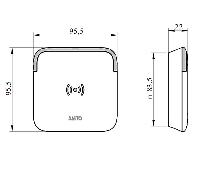 SALTO Design XS wandlezer met of zonder keypad verkrijgbaar MIFARE DESFire + Bluetooth LE + HSE. Voor Europese standaard. Vierkante of conische vorm.