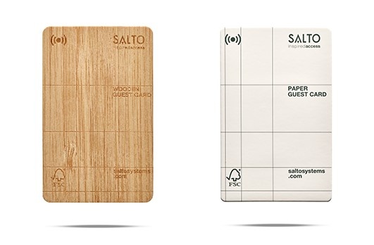 Gemaakt in dezelfde afmetingen als traditionele plastic toegangskaarten ziet en voelt de milieuvriendelijkere kaart van SALTO er hetzelfde uit. Deze SALTO toegangskaarten voor hotelgasten zijn gemaakt van bamboe of papier met FSC-certificaat (duurzaam gekapt hout), ideaal om een plastic-vrije oplossing te bieden.