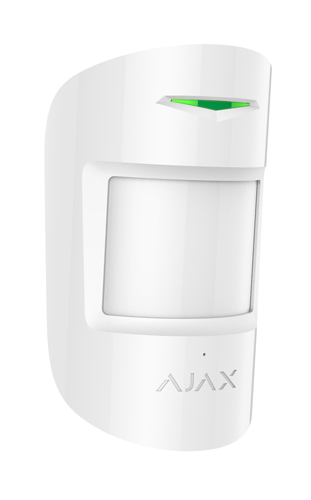 Ajax CombiProtect Bewegingsmelder en glasbreukmelder Ajax CombiProtect detecteert in een ruimte een mens, negeert huisdieren, maar bijv. ook tocht en geluid van een airco. Deze melder heeft een akoestische glasbreukmelder die tot een afstand van 9 meter glasbreuk kan detecteren.