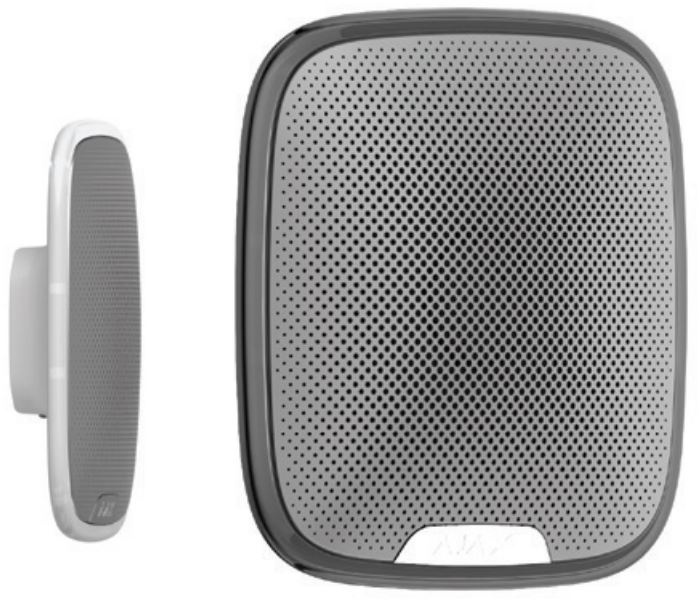 Ajax StreetSiren Draadloze buitensirene Een sirene met een aanpasbaar geluidsniveau tussen 81 en 105 dB. Maakt verbinding met een Ajax Hub tot een maximale afstand van 2.000 meter (open veld).