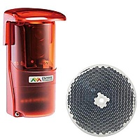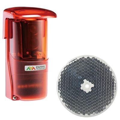 Waterdichte fotocel met refelctor voor een universele voedingsspanning van 12 Vac/dc tot 230 Vac. Gemakkelijk uit te lijnen dankzij de verstelbare lens (180° horizontaal en 15° vertikaal). Bereik met meegeleverde reflector (82 mm): 0,5 tot 10 m.