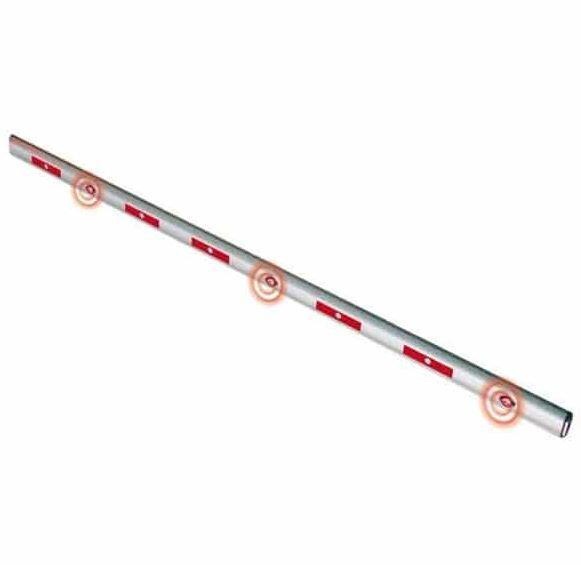 Fadini aluminium boom voor BAYT 980 slagboom. Slagboommast voorzien van rode reflecterende stickers , Boom vanaf 4,2 mtr met verbindingsstuk Contragewichten en hekwerk onder boom op aanvraag leverbaar Bij 5,3 meter of meer advies: verstevigingsboom gebruiken (194500 of 986000).