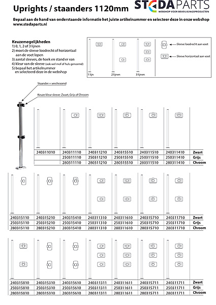 Staanders / Uprights 1120mm met sleeves voor toegangspoort