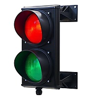 Verkeerslicht met 2 lampen Rood & groen Zwarte aluminium behuizing 24V of 230V. Het verkeerslicht bestaat uit een aluminium behuizing en wordt geleverd inclusief een zwarte kunststof steun. Het verkeerslicht wordt geleverd inclusief lampen.